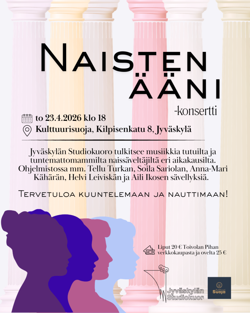 SAVE THE DATE: Naisten äänet -konsertti torstaina 23.4.2026 klo 18 Jyväskylän Kulttuurisuojassa (Valtiontalon juhlasali, Kilpisenkatu 8, Jyväskylä)
